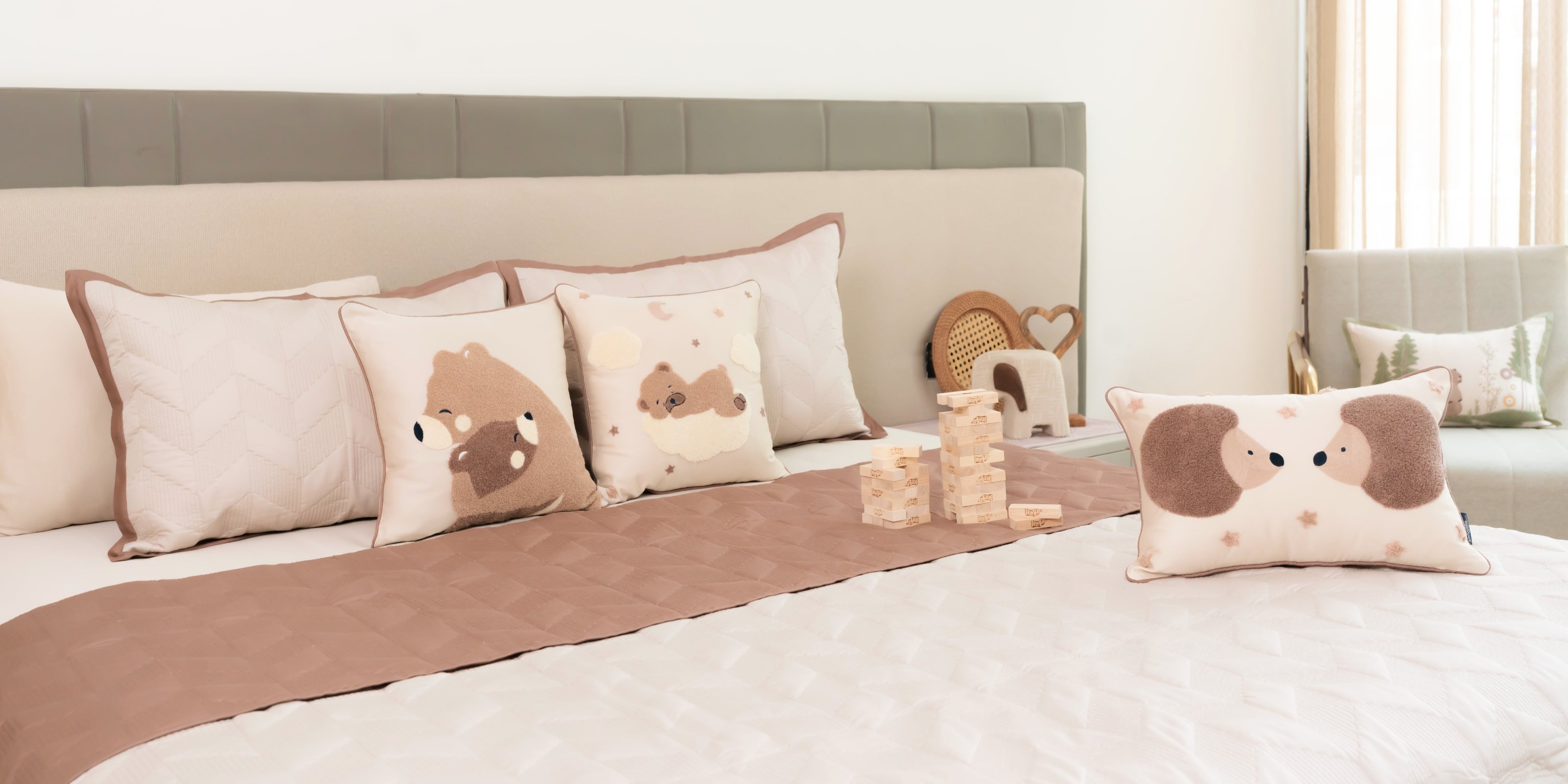 Cuddly Cubbies Cotton Embroidered Sand Cushion Cover Kids Design 12" X 18"