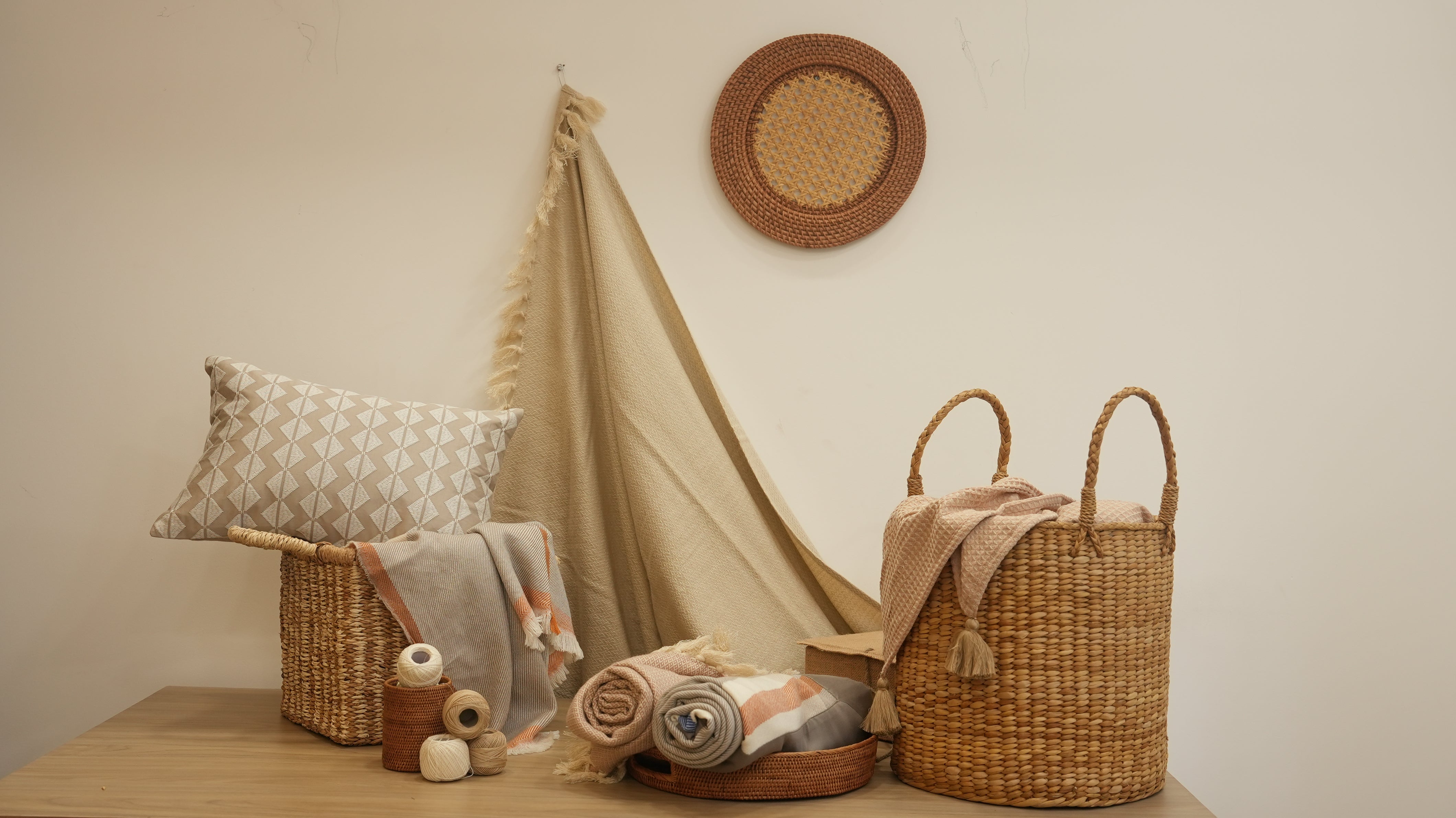 Quartz Clay Woven Throw with Cushion Covers