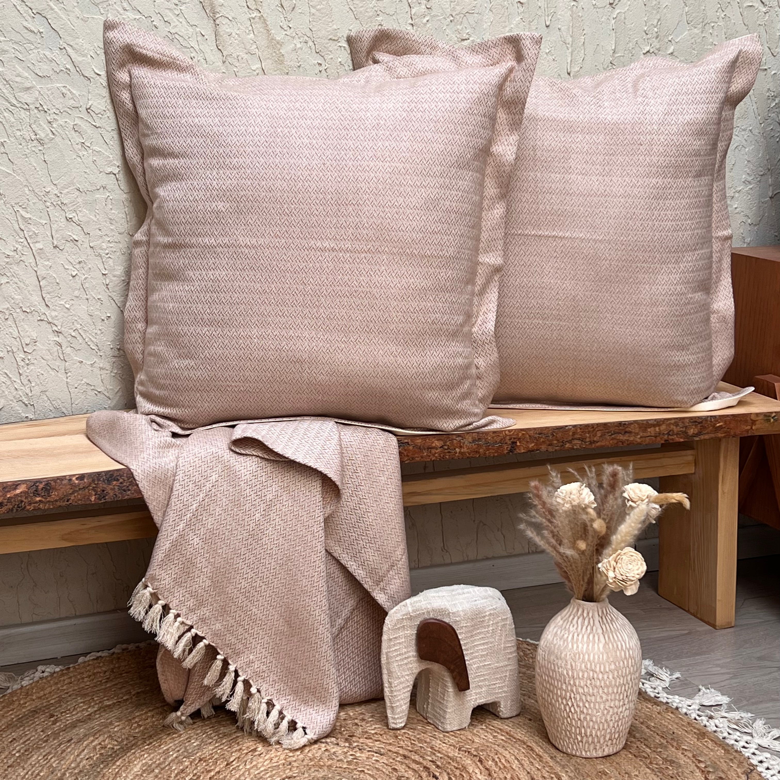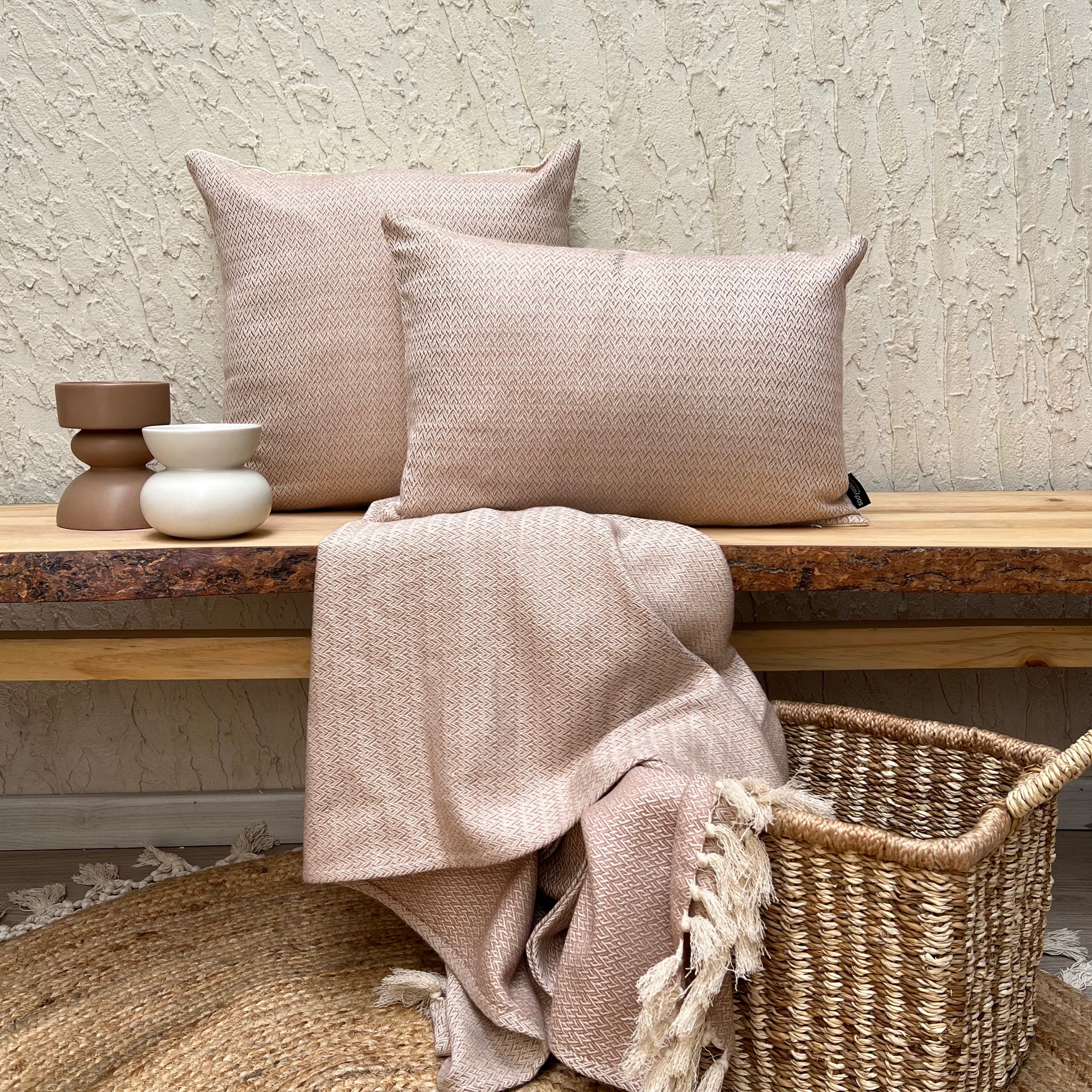 Diamond Dusty Rose Woven Throw with Cushion Covers