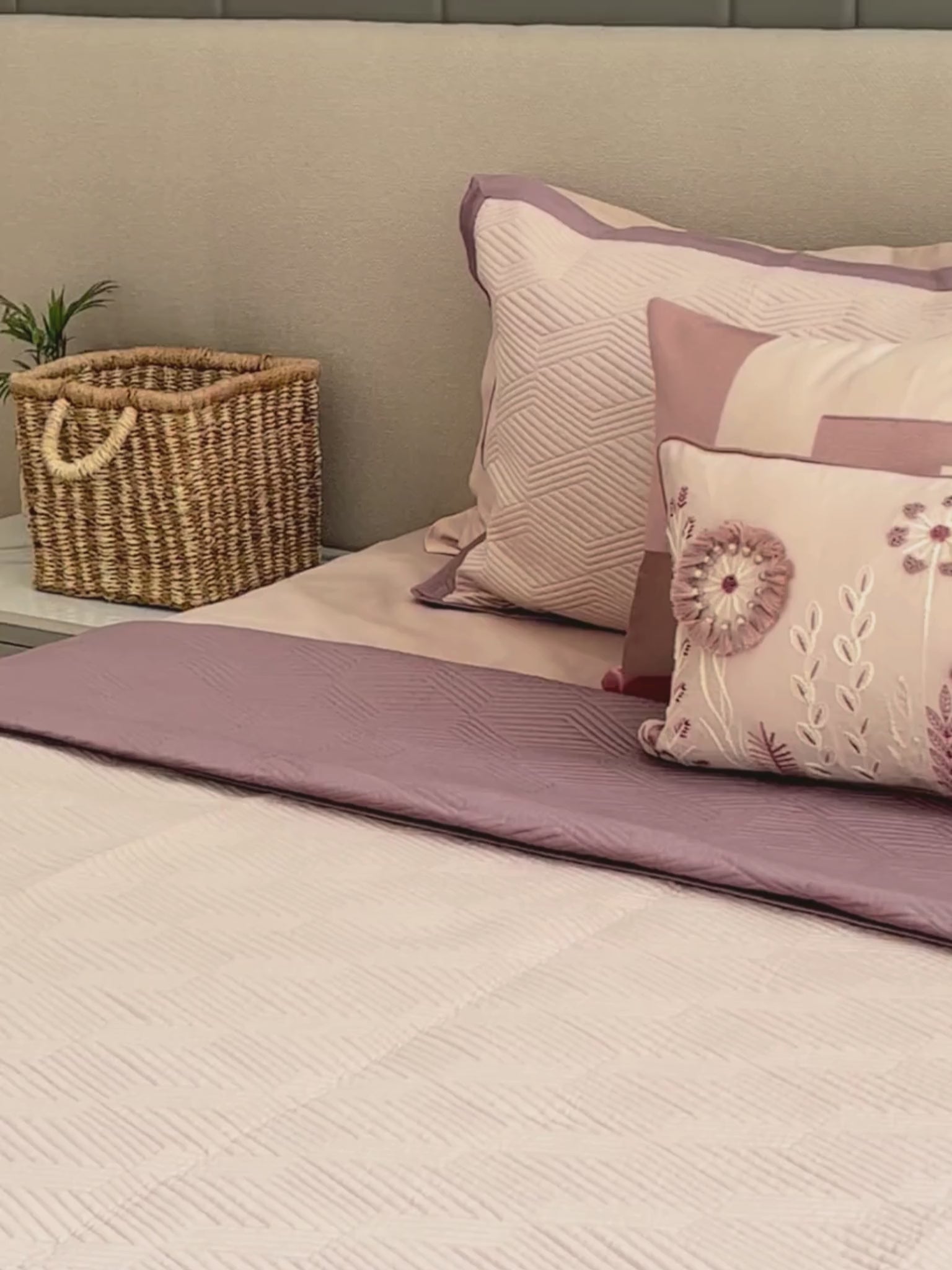 Adelle Old Rose and Buff Cotton Reversible Bedspread